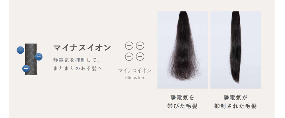 低温 x 大風量のケアを叶えるマイナスイオンヘアドライヤー。風の種類が選べる軽量モデル。 製品の特長 大風量1.8立法メートル/分*1 x 軽量 本体が380g*2と軽量なので、使用時に手が疲れづらく、1.8立方メートル/分*1の大風量ですばやくドライできます。 髪へのやさしさ 低温 x 大風量 低温 x 大風量で、熱ダメージを与えずに髪や頭皮をやさしくドライ。 5種類の風が選べる 速乾(TURBO)/いたわり(CARE)/ヘアセット(SET)のほかに冷風の風量も選べるのでツヤだしやスタイリングキープまで便利に使えます。 軽量約380g*2 軽量かつ飽きのこないシンプルなデザイン。使いやすく、インテリアに調和しやすいスタイリッシュさ。 静電気を抑制してまとまりアップ マイナスイオンが静電気を抑制。 集風ノズル 風を集める構造で、効率的にドライ。 *1 最大風量時。JIS基準測定法による。 *2 電源コード含まず。