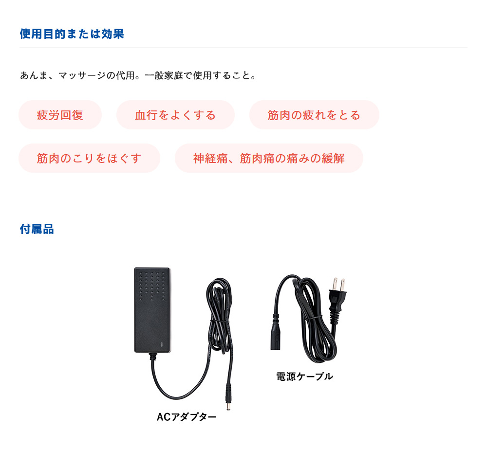 ※専用イスは別売です。 ※あんま、マッサージの代用。一般家庭で使用すること。 ※ご使用前に「取扱説明書」をよくお読みのうえ、正しくお使いください。 ※医師からマッサージを禁じられている人は、使用しないでください。 ※電気代の目安は、1日約30分毎日使用した場合。電力料金目安単価 31円/kWh(税込)の場合で算出。