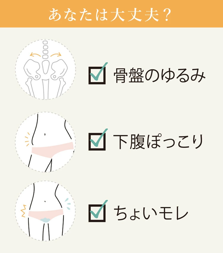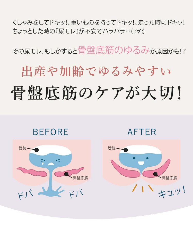 きゅっと引き締めとグイっともち上げの2つのサポートで骨盤底筋に働きかけます。