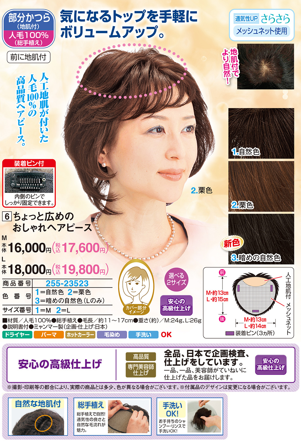 ●人毛100%・総手植え・人工地肌付・装着ピン3箇所