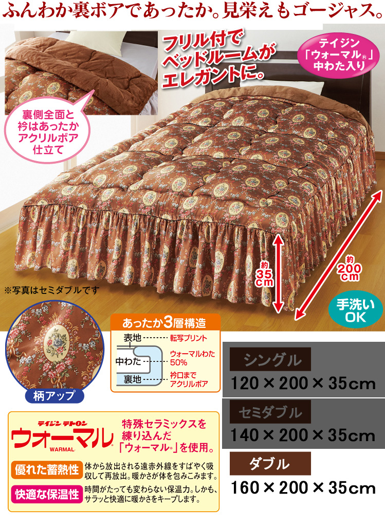 ●(約)/<セミダブル>140×200×35cm、詰め物1.4kg、<ダブル>160×200×35cm、詰め物1.6kg