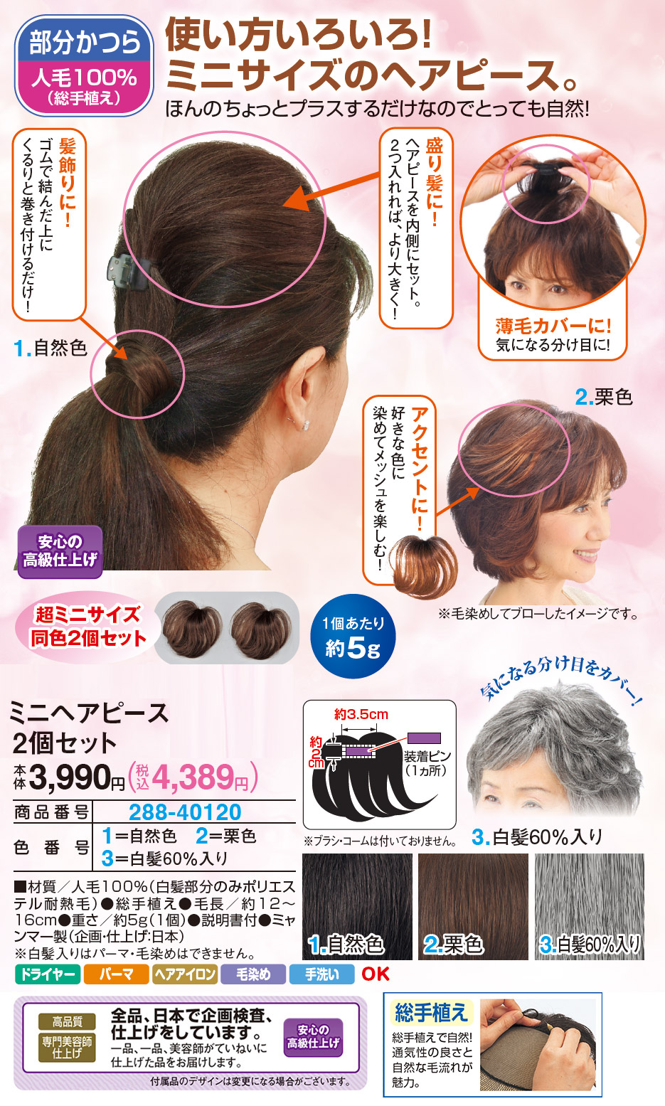 ■材質/人毛100%(白髪部分のみポリエステル耐熱毛)