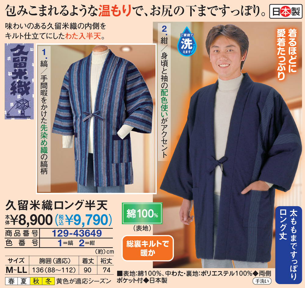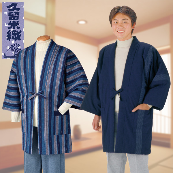 味わいのある久留米織の内側をキルト仕立てにしたわた入半天。