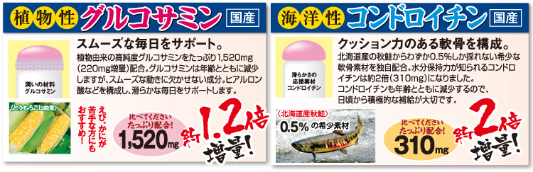 ※1:コンドロイチン、Ⅱ型コラーゲンは、軟骨由来の成分です。
