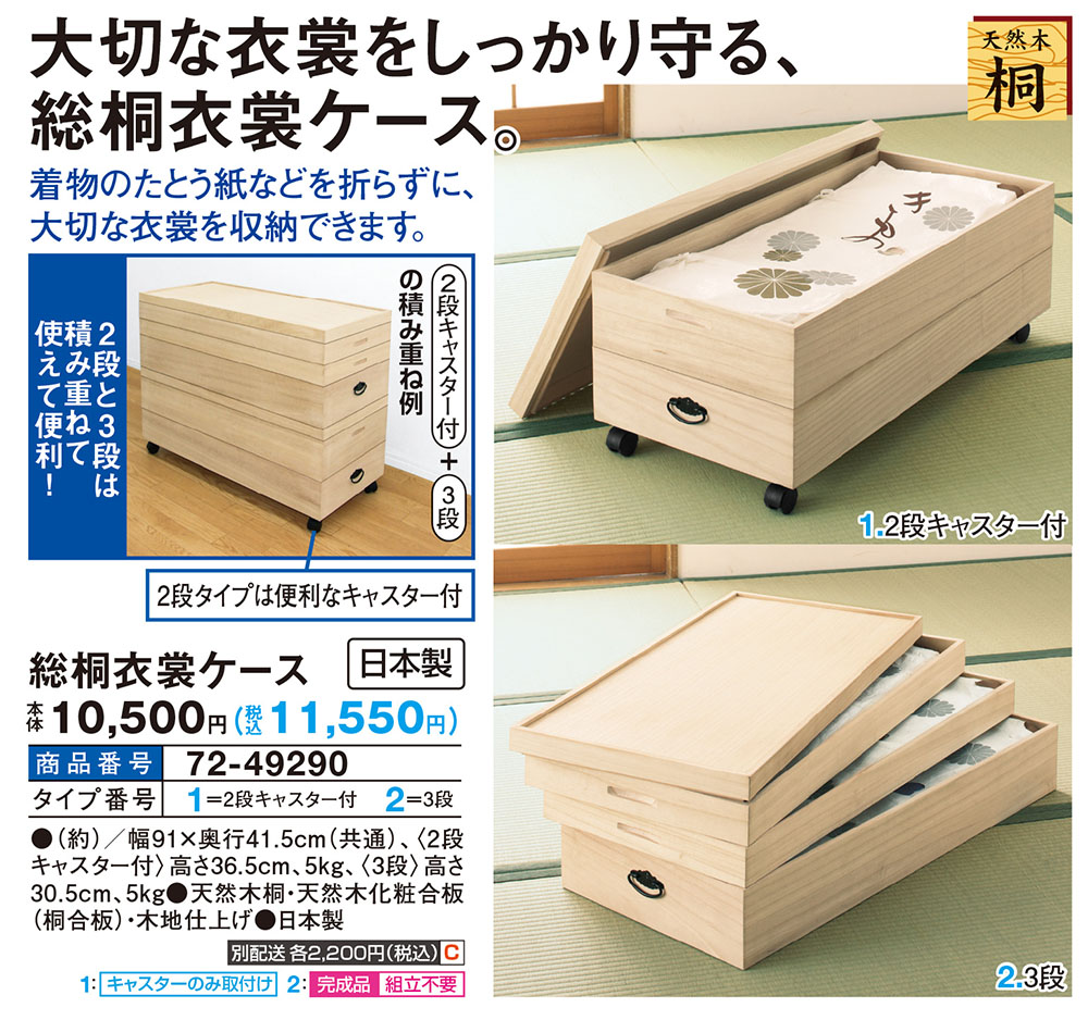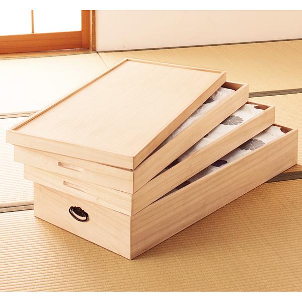 大切な衣裳をしっかり守る、総桐衣裳ケース。 着物のたとう紙などを折らずに、大切な衣裳を収納できます。