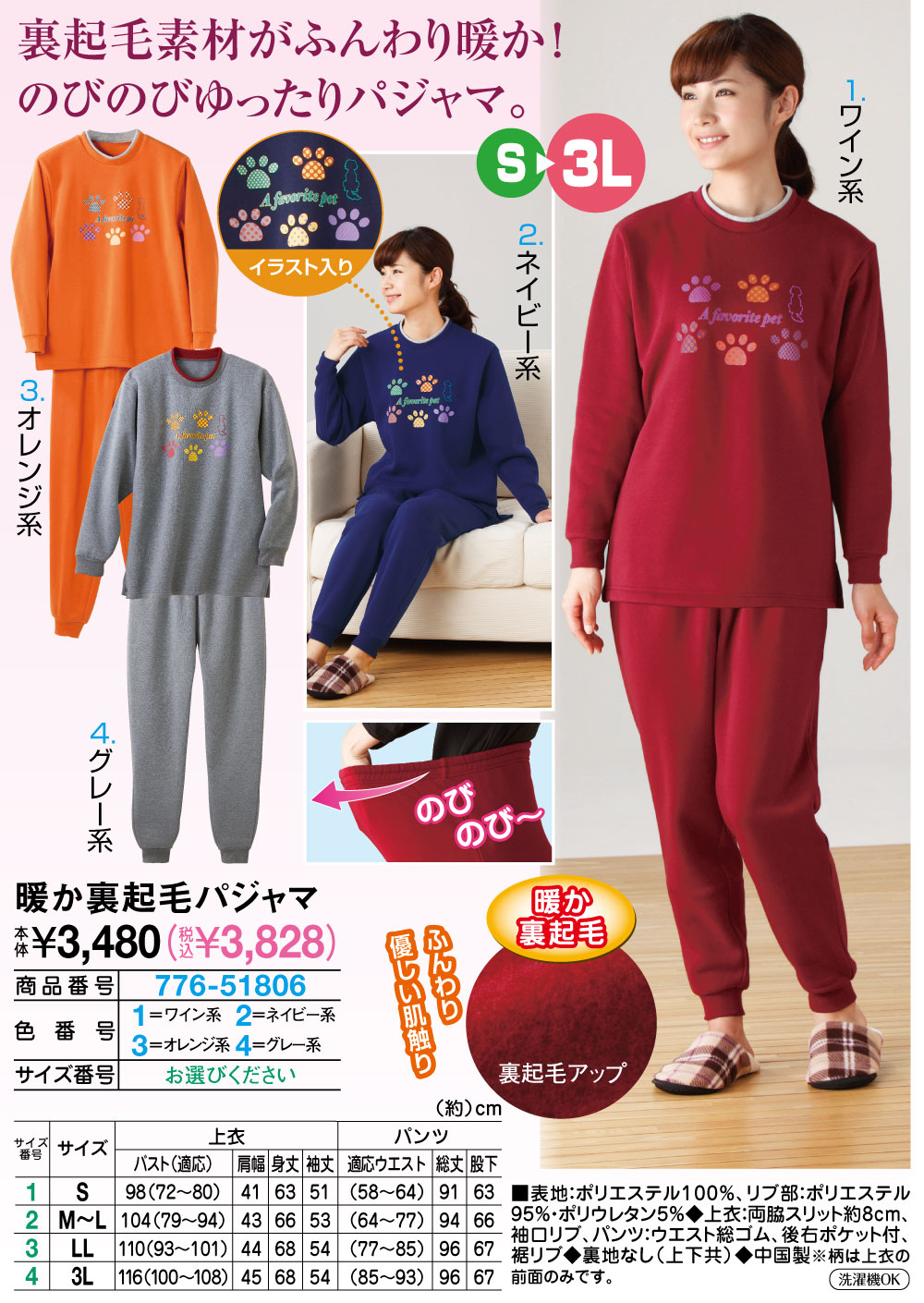 裏起毛素材がふんわり暖か!のびのびゆったりパジャマ!