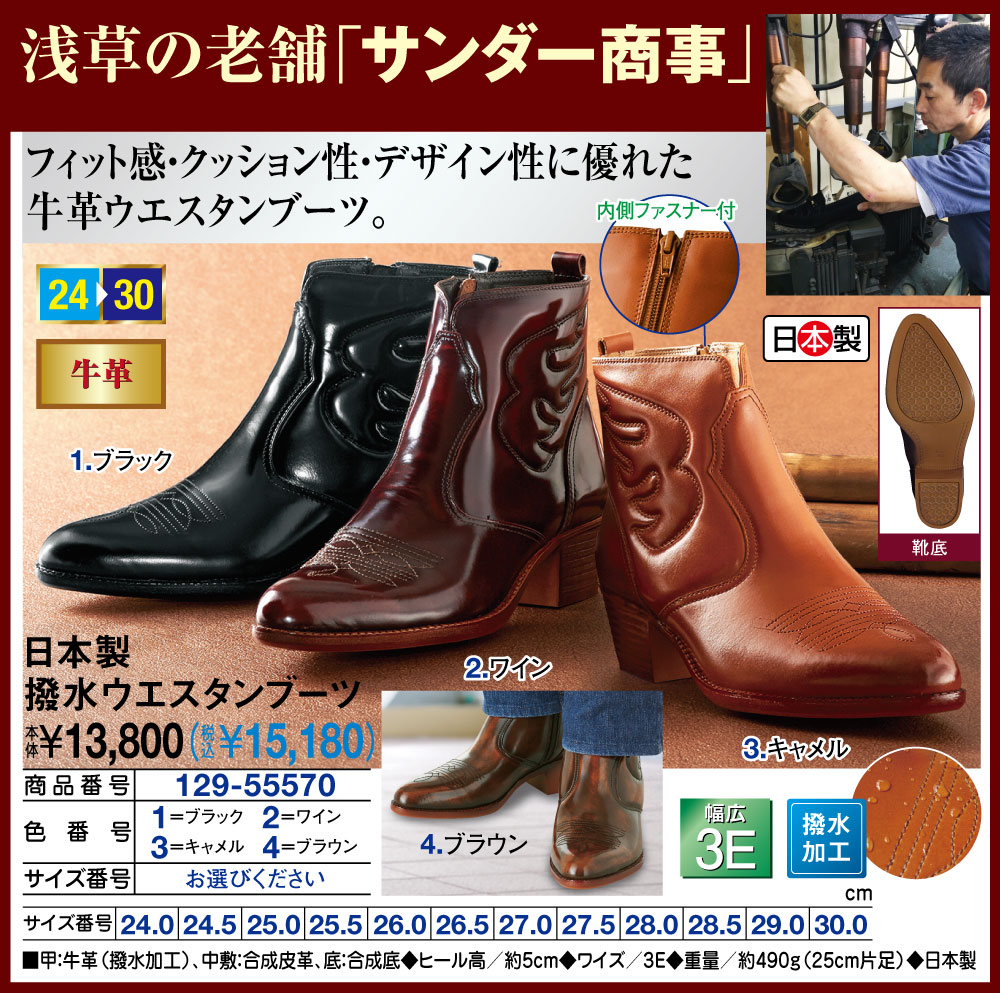 日本製 撥水ウエスタンブーツ