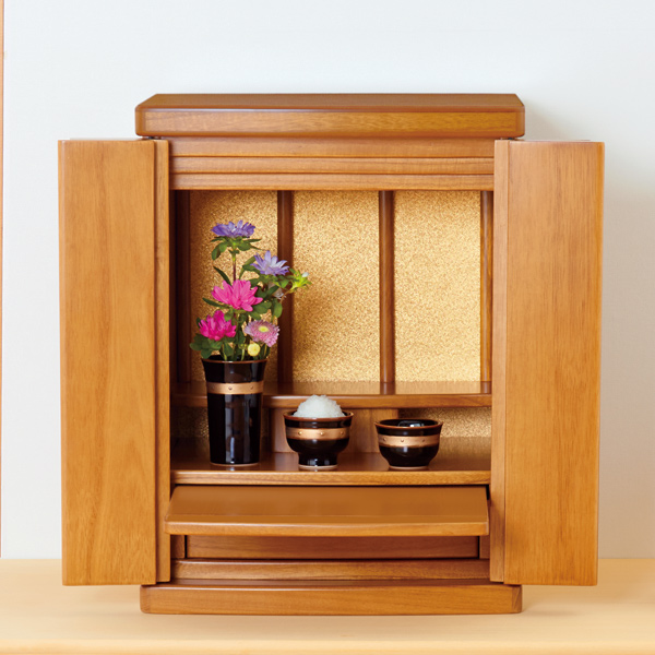 色々な部屋に合うモダンな家具調仏壇。 マンションや仏間がないご自宅に 天然木桐 桐の美しい木目のシンプルデザイン ろうそくやお線香が収納できる引出し付