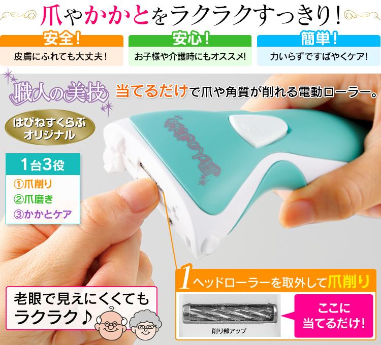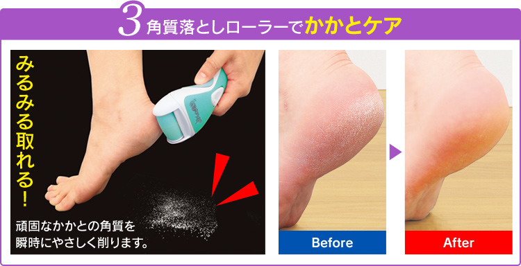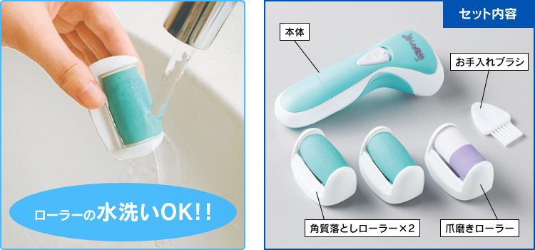・頑固なかかとの角質を瞬時にやさしく削ります。