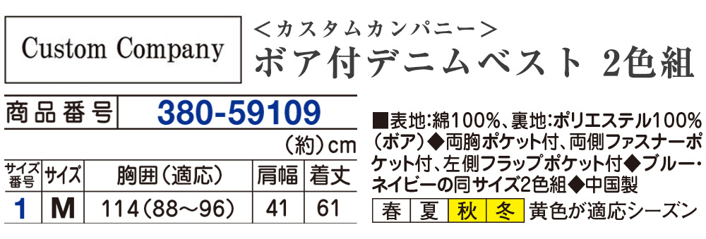 ■表地:綿100%、裏地:ポリエステル100%(ボア) ◆両胸ポケット付、両側ファスナーポケット付、左側フラップポケット付 ◆ブルー・ネイビーの同サイズ2色組 ◆中国製