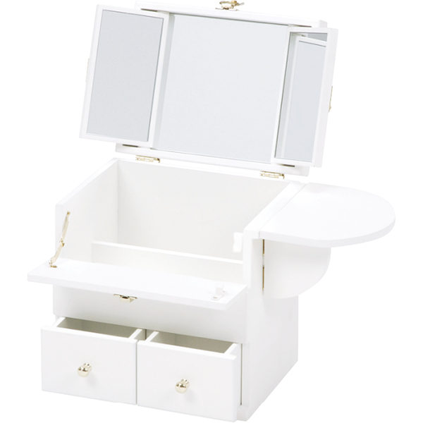 三面鏡とミニテーブルが付いた使いやすいメイクボックス。