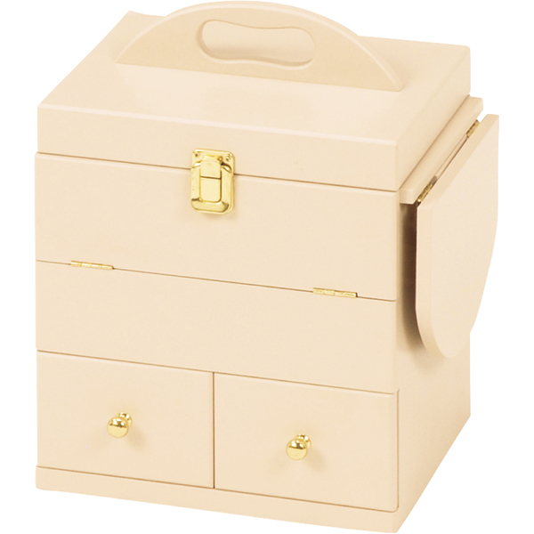 三面鏡とミニテーブルが付いた使いやすいメイクボックス。