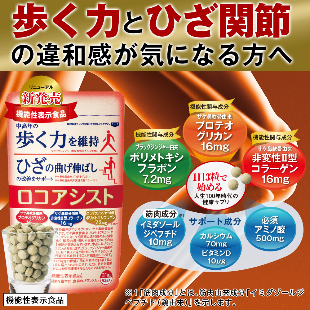 歩く力とひざ関節の違和感が気になる方へ 1日3粒で始める 人生100年時代の健康サプリ