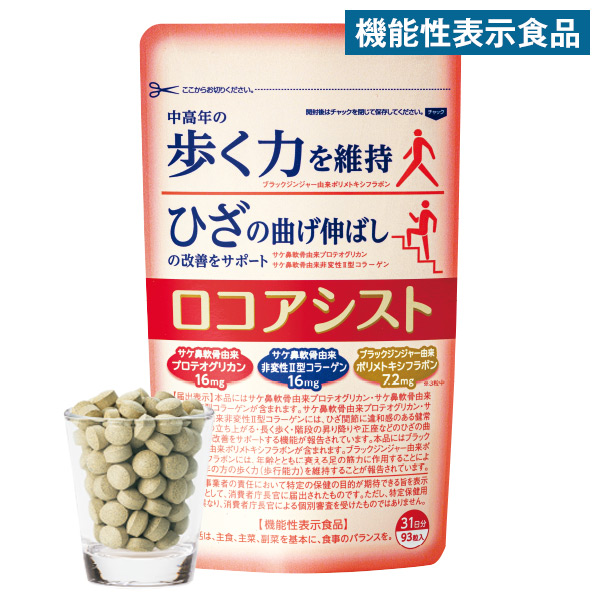※食生活は、主食、主菜、副菜を基本に、食事のバランスを。 【摂取上の注意】●本品は、多量摂取により疾病が治癒したり、より健康が増進するものではありません。一日摂取目安量を守ってください。●食物アレルギーをお持ちの方は、原材料をご確認の上お召し上がりください。●本品は水産物由来原料を使用しております。製品によっては多少色の違いが出る場合もありますが、品質に問題はありません。粒の表面の斑点は、ブラックジンジャー抽出物由来のものですので、品質に問題はありません。 【保存上の注意】乳幼児の手の届かない所に保存してください。品質保持のため開封後はチャックをしっかり閉め、なるべくお早めにお召し上がりください。 ●本品は、疾病の診断、治療、予防を目的をしたものではありません。●本品は、疾病に罹患している者、未成年者、妊産婦(妊娠を計画している者を含む。)及び授乳婦を対象に開発された食品ではありません。●疾病に罹患している場合は医師に、医薬品を服用している場合は医師、薬剤師に相談してください。●体調に異変を感じた際は、速やかに摂取を中止し、医師に相談してください。 【お届けについて】 「ロコアシスト」はご注文後1週間~10日前後で郵便ポストに投函いたします。 お届け日時の指定はできかねますので、ご了承ください。 ※ポストのサイズなどによって、投函出来ない場合は手渡しでのお届けとなります。 ※4パック以上のご注文、他の商品と同時にご注文の場合は、弊社が指定する配送業者でお届けいたします。 その場合、郵便ポストに投函でのお届けはできかねます。