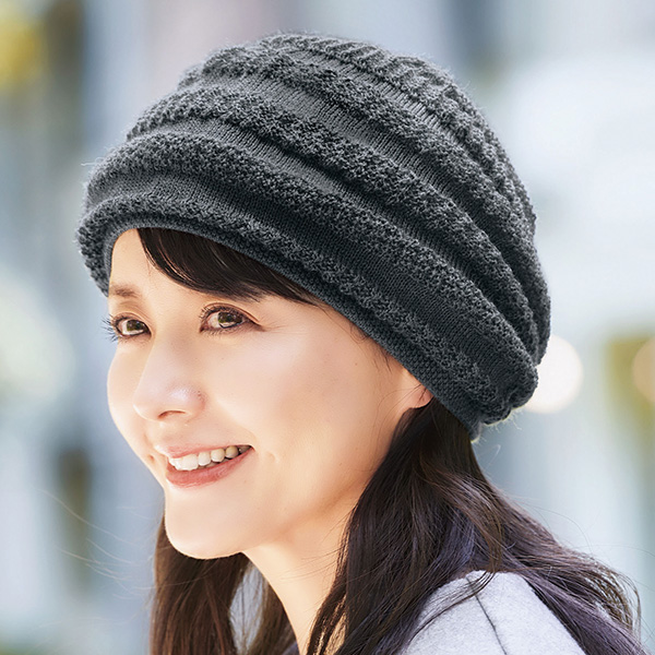 ウールとシルクの二重構造であったか快適! 縫い目がなくソフトなかぶり心地のニット帽。 締め付け感なくフィットします。 おうち時間でも活躍。 【暖かくムレにくい二重構造!】 ・ウール混 暖かい空気をしっかりキャッチ! ・シルク100% 通気性があるからムレにくい。 【リバーシブル】 気分によって使い分け! ・ウール混面 ・シルク面/シルク面の色はベージュ。(2色共通) シルク面を内側にしてかぶれば髪に優しい。 ●2色セット