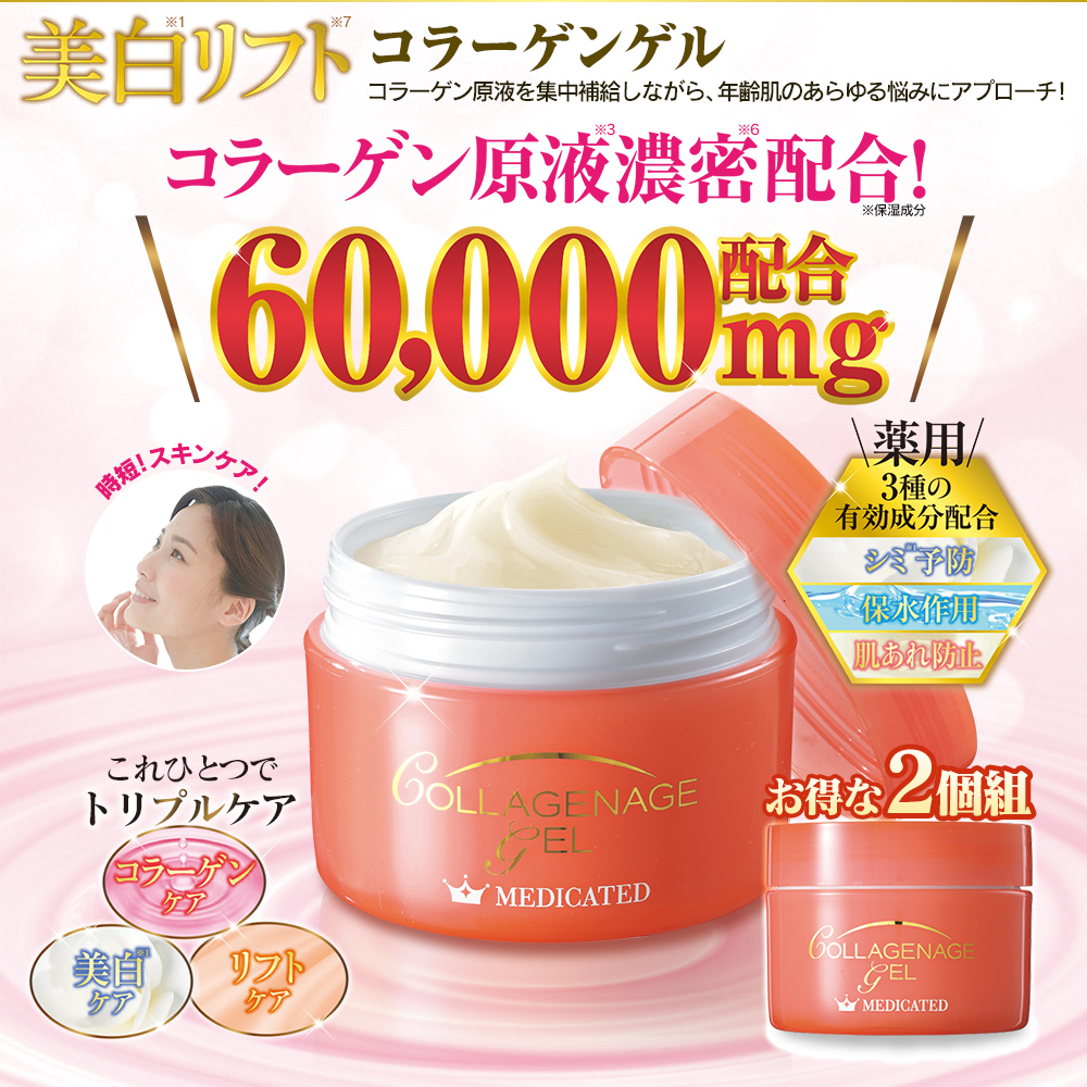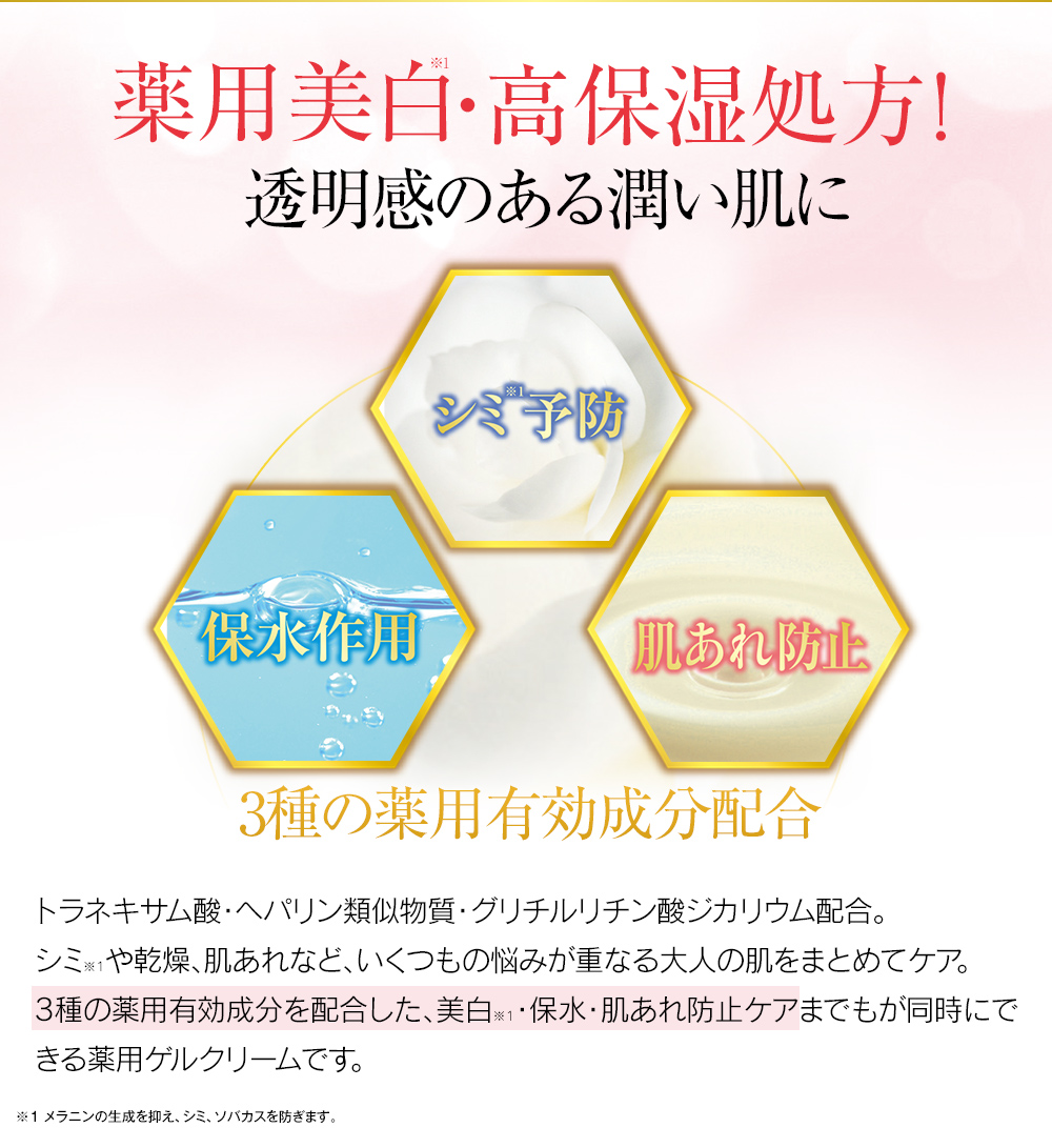 【内容量】1個あたり:100g(朝晩使用で約2ヵ月分)×2個組 【販売名】薬用美白保湿ゲルIII 【有効成分】ヘパリン類似物質、トラネキサム酸、グリチルリチン酸2K