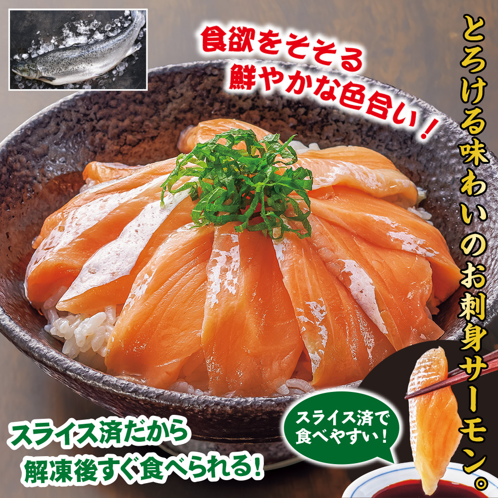 最も脂の乗った部位のみを使用しました。 クセのない上品な脂の旨みをお楽しみいただけます。 食欲をそそる鮮やかな色合い! スライス済だから解凍後すぐ食べられる! スライス済で食べやすい!