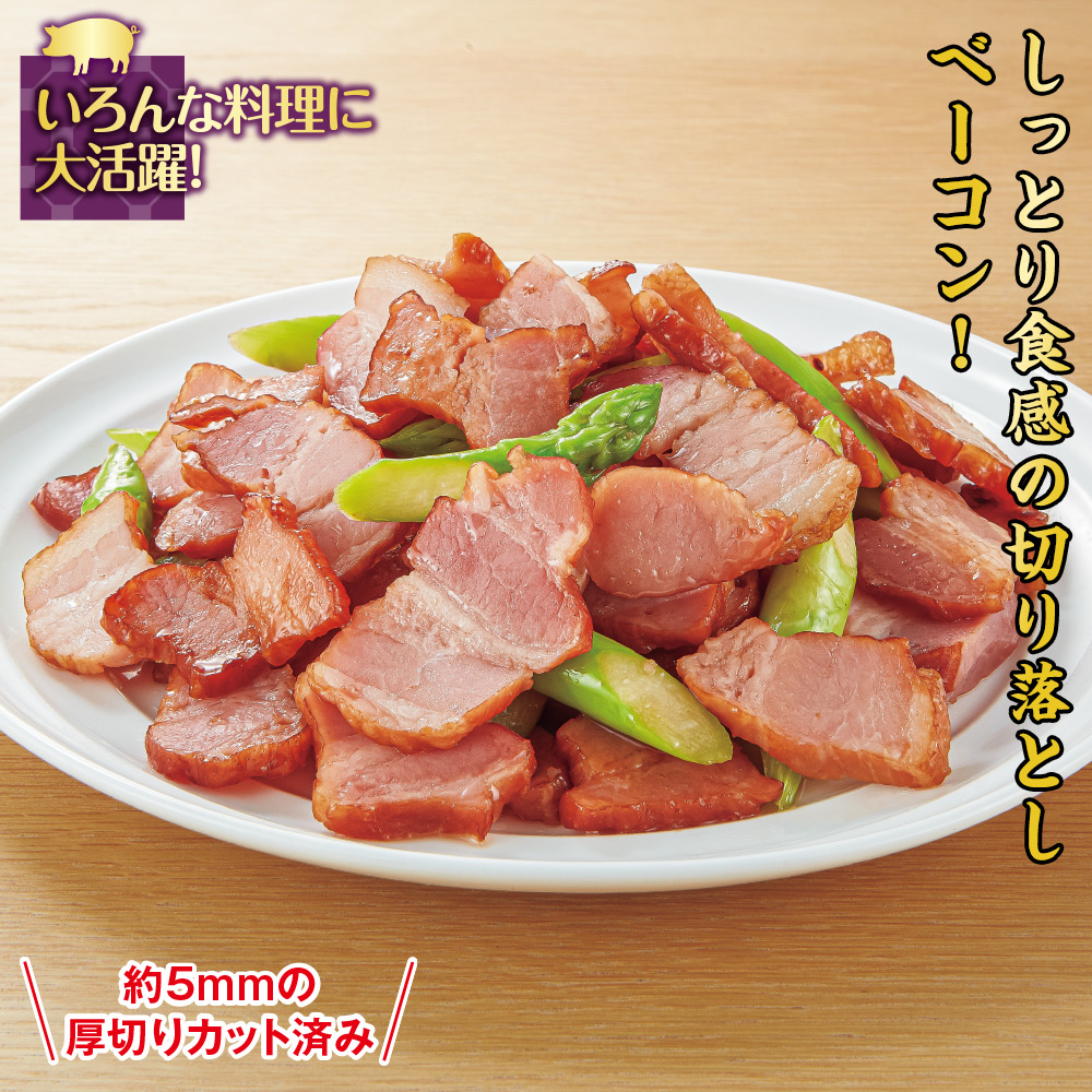 いろんな料理に大活躍! 豚バラ肉を山桜チップでじっくりスモークしました。 カット済みなので必要な分だけすぐ使えます。