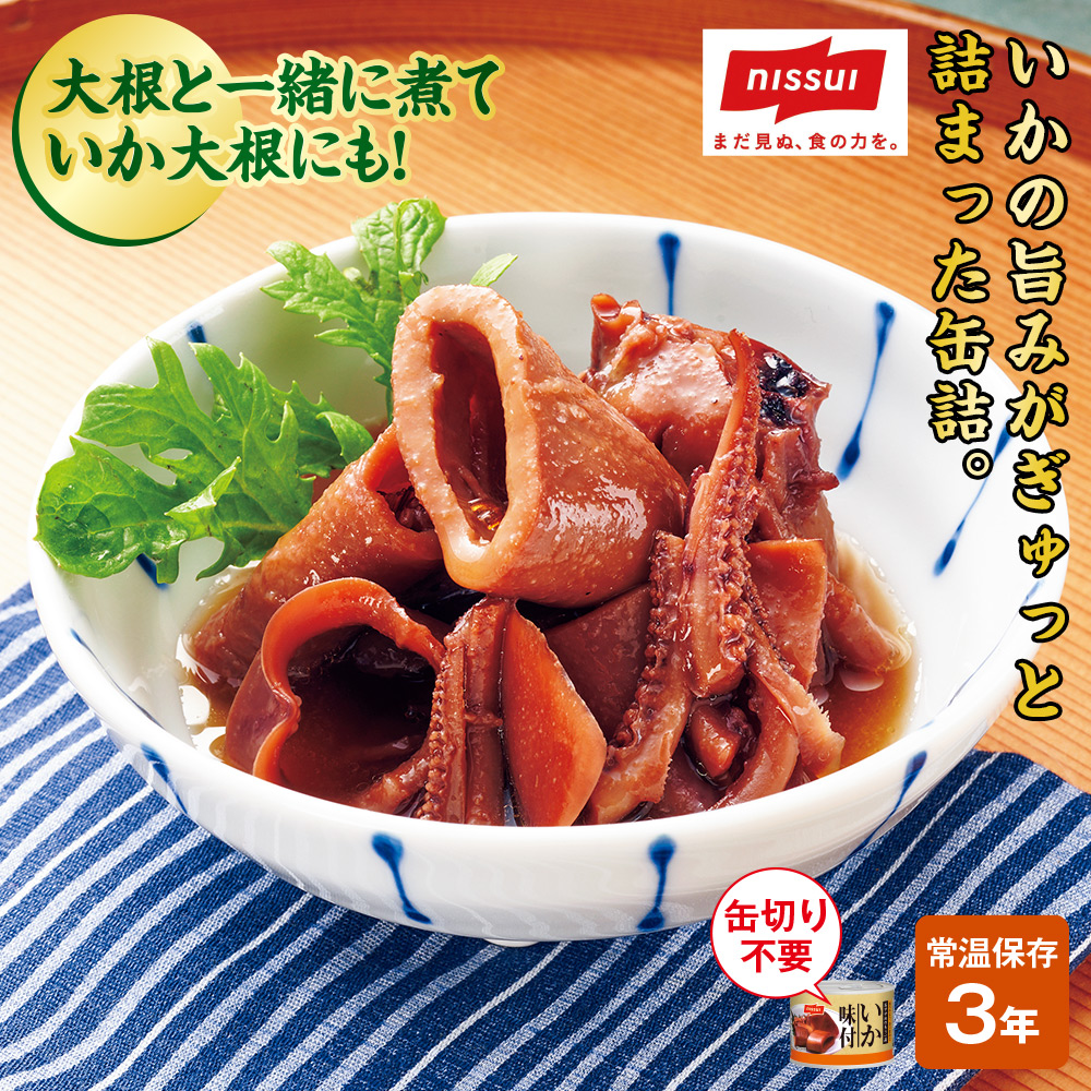 大根と一緒に煮ていか大根にも! 生醤油と糖蜜を使ったコクのあるタレでいかをじっくり煮付けました。 開けてすぐそのままお召し上がりいただけます。 常温保存3年 缶切不要