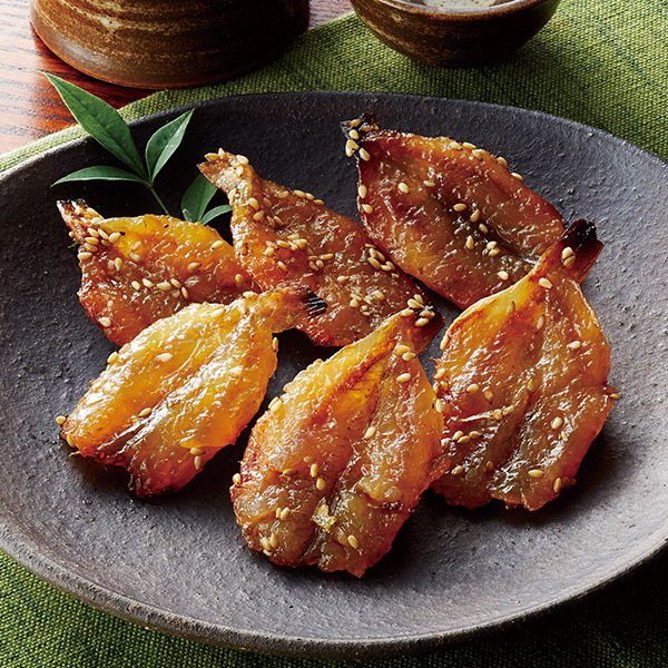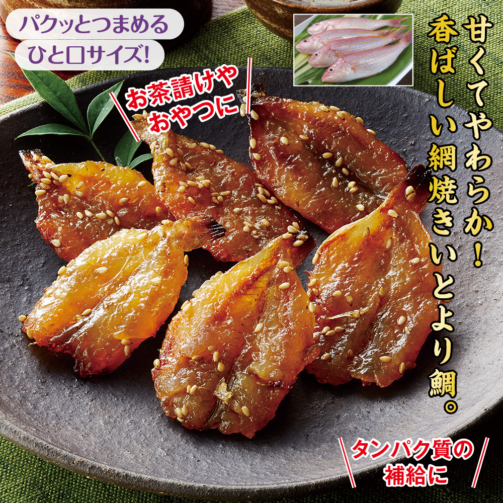 あっさりとした白身が特徴のいとより鯛を甘く味付けし、やわらかく食べやすいサイズに仕上げました。 パクッとつまめるひと口サイズ! お茶請けやおやつに! たんぱく質の補給に! 1パックに約6~12枚入り