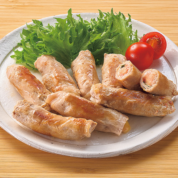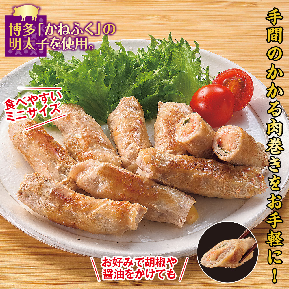 チーズ、明太子、大葉を、豚ロース肉で巻きました。そのまま炒めるだけで美味しく食べられます。