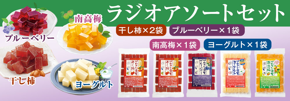 ●セット内容/260g×5袋 ●賞味期限/製造日から常温10ヵ月 ●特定原材料/<ブルーベリー>さけ・大豆<干し柿>さけ・大豆<南高梅>さけ・大豆<ヨーグルト>乳成分・さけ・大豆