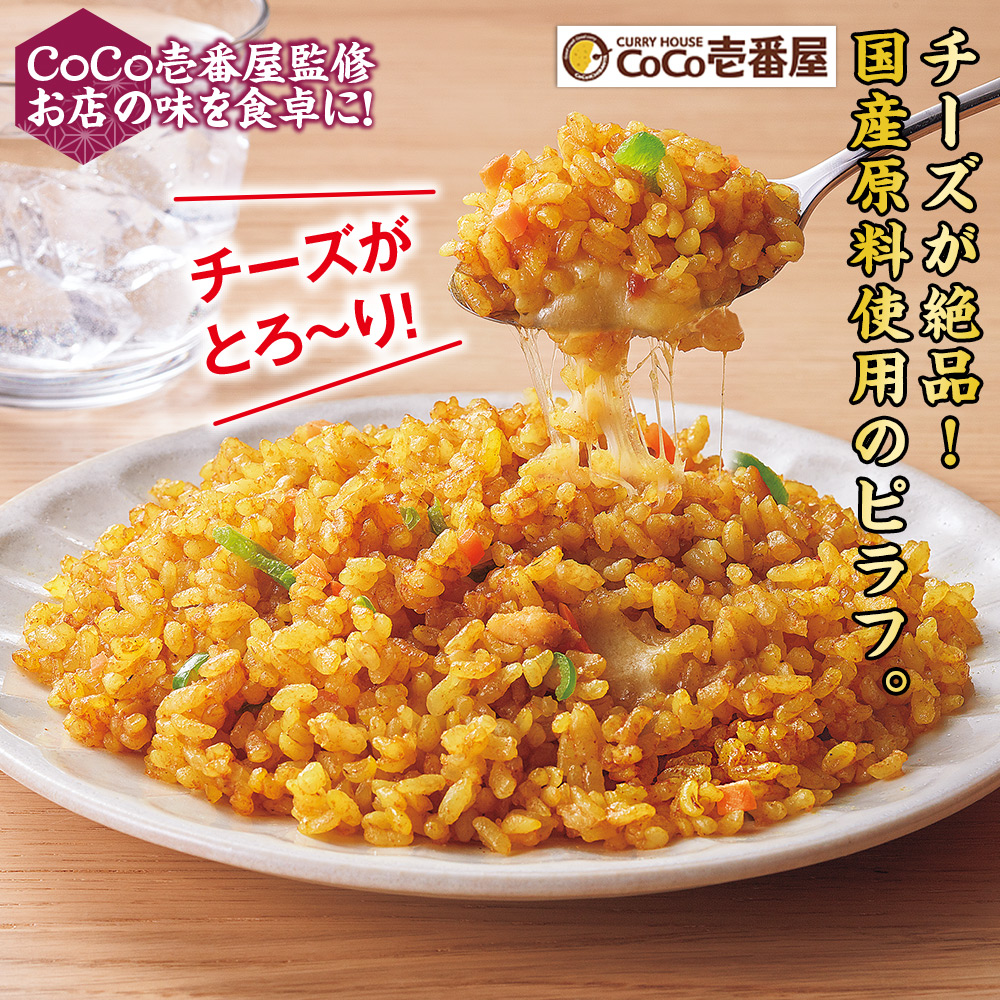 CoCo壱番屋監修お店の味を食卓に! コクのあるカレーをベースに、トッピングにチーズを加えたマイルドな辛さのピラフです。