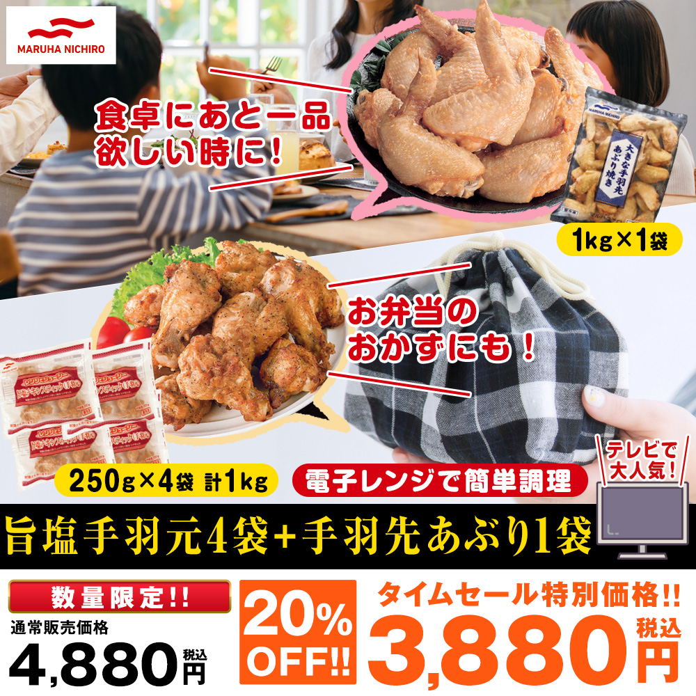 マルハニチロ 旨塩手羽元4袋+手羽先炙り1袋【タイムセール】
