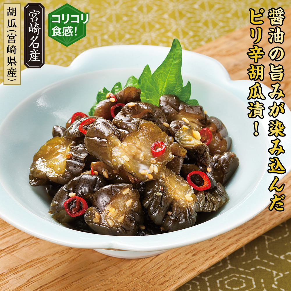 【胡瓜(宮崎県産)】 コリコリ食感! 宮崎県産胡瓜を、国産丸大豆醤油でじっくり味付けをしました。 唐辛子がピリリときいたクセになる旨さです。