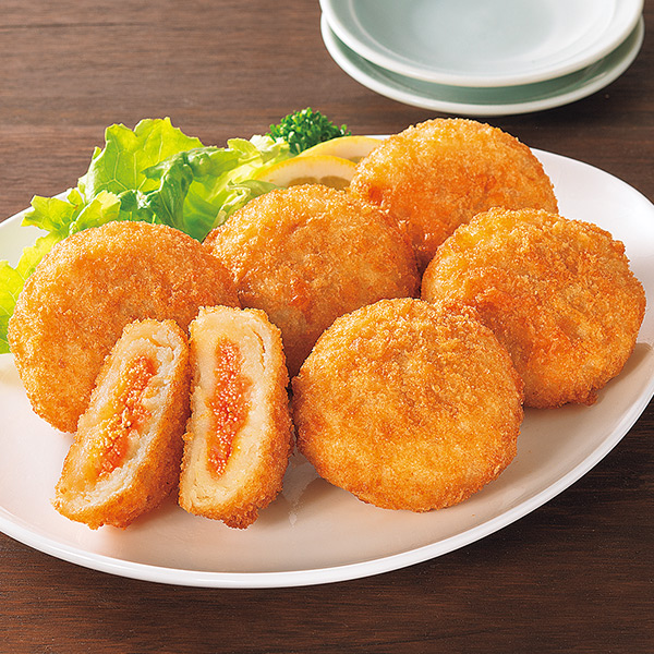 ●セット内容/270g(6個入)×6袋 ●賞味期限/製造日から冷凍1年 ●加工地/日本 ●原材料/野菜{ばれいしょ(北海道)、たまねぎ}、辛子明太子、辛子明太子漬込液、パン粉、砂糖、植物油脂、ラード、ゼラチン、食塩、衣(パン粉、小麦粉、植物油脂、でん粉、ショートニング、コーンシロップ、粉末状大豆たん白、食塩)、揚げ油(パーム油、米ぬか油) ●特定原材料等 /小麦・卵・乳成分・大豆・ゼラチン