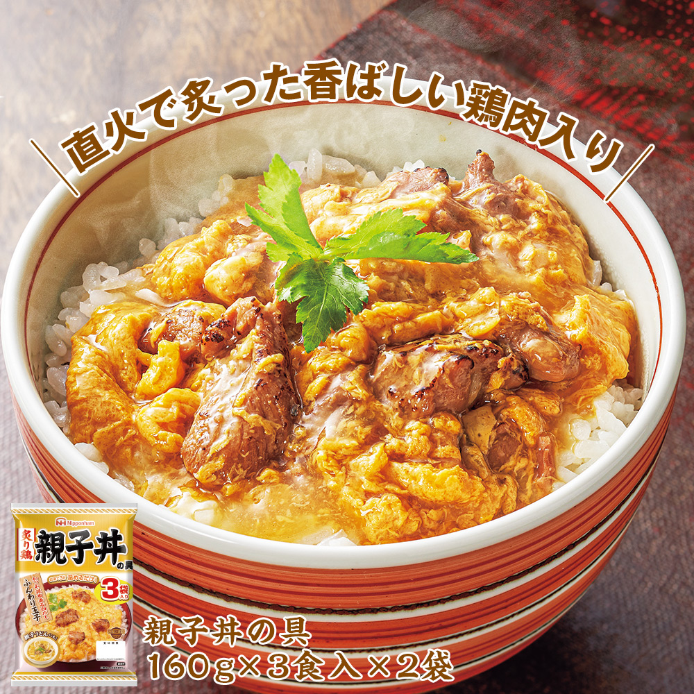 ●セット内容/<中華丼の具>(3食入)×2袋・<親子丼の具>(3食入)×2袋<牛すき焼き丼の具>(3食入)×2袋<牛丼の具>(2食入)×1袋 ●賞味期限/製造日から常温1年 ●加工地/日本 ●原材料/<中華丼の具>野菜(たまねぎ、白菜、きくらげ、しょうが、にんにく)、食肉(鶏肉、豚肉)、うずら卵水煮(タイ製造)、たけのこ水煮、にんじん水煮、アミノ酸液調味料、砂糖、植物油、オイスターソース、ポークエキス、チキンブイヨン、しょう油、ほたてエキス調味料、食塩、水あめ、粉末状大豆たん白、香辛料、たん白加水分解物、醸造酢、乳たん白、卵白末、脱脂粉乳、しょうが汁/増粘剤(加工デンプン、増粘多糖類)、調味料(アミノ酸等)、加工デンプン、着色料(カラメル、ウコン)、(一部に卵・乳成分・小麦・ごま・大豆・鶏肉・豚肉・ゼラチンを含む)<親子丼の具>鶏肉(タイ又は日本)、全卵液、卵白液、白だし(しょう油、みりん、かつお・昆布だし)、砂糖、清酒、焼きあごだし、ぶどう糖、しょう油、植物油、食塩、粉末状大豆たん白、醸造酢、香味油、たん白加水分解物、アミノ酸液調味料、たまねぎエキス、酵母エキス、乳たん白、卵白末/増粘剤(加工デンプン、増粘多糖類)、調味料(アミノ酸)、酸化防止剤(ビタミンE)、香料、カロテン色素、香辛料抽出物、(一部に卵・乳成分・小麦・大豆・鶏肉を含む)<牛すき焼き丼の具>野菜(たまねぎ、白菜、にんにく)、牛肉(オーストラリア又はニュージーランド)、こんにゃく、焼き豆腐、しょう油、砂糖、みりん、食塩、醸造酢、卵白末、ビーフエキス調味料、濃縮りんご果汁、植物油、酵母エキス、しょうが汁、香辛料、たまねぎエキス、脱脂粉乳、野菜エキス調味料/調味料(アミノ酸等)、増粘剤(加工デンプン、増粘多糖類)、加工デンプン、安定剤(加工デンプン)、豆腐用凝固剤、水酸化カルシウム、カラメル色素、香辛料抽出物、(一部に卵・乳成分・小麦・牛肉・大豆・りんご・ゼラチンを含む)<牛丼の具>牛肉(オーストラリア又はニュージーランド)、野菜(たまねぎ、にんにく)、砂糖、しょう油、食塩、オイスターソース、卵白末、みりん、ビーフエキス調味料、醸造酢、濃縮りんご果汁、植物油、しょうが汁、酵母エキス、香辛料、たまねぎエキス、脱脂粉乳、野菜エキス調味料/調味料(アミノ酸等)、加工デンプン、増粘剤(加工デンプン、増粘多糖類)、カラメル色素、香辛料抽出物、(一部に卵・乳成分・小麦・牛肉・大豆・りんごを含む) ●特定原材料等 /<中華丼の具>卵・乳成分・小麦・ごま・大豆・鶏肉・豚肉・ゼラチン<親子丼の具>卵・乳成分・小麦・大豆・鶏肉<牛すき焼き丼の具>卵・乳成分・小麦・牛肉・大豆・りんご・ゼラチン<牛丼の具>牛肉・大豆・りんご