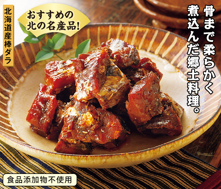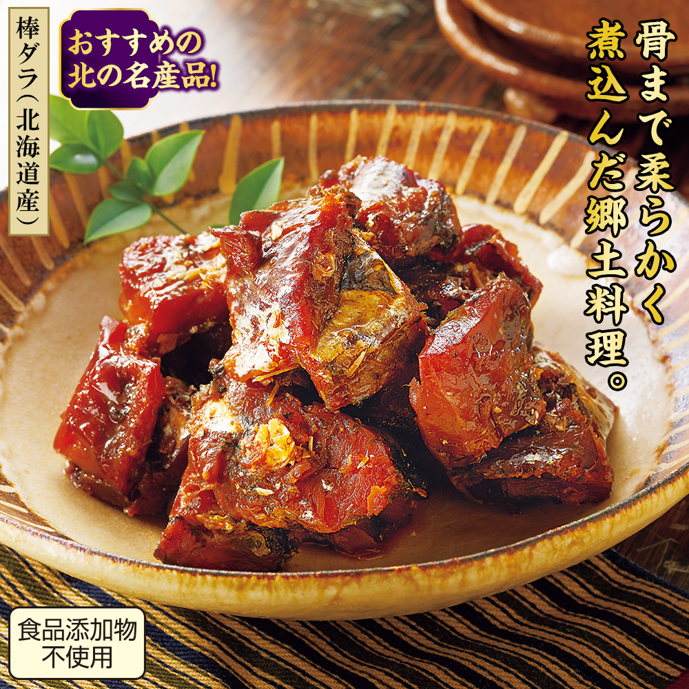 【北海道産棒だら】 北の名産品をおせちに! 食品添加物は使わず、国産丸大豆醤油と砂糖のみで薄味に仕上げた素朴な田舎料理。 カルシウム豊富。 食品添加物不使用!