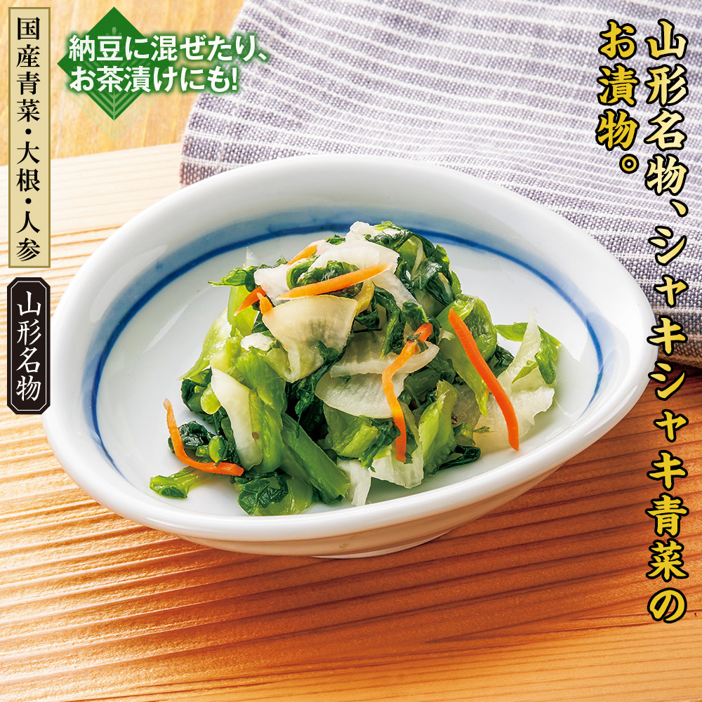 【国産青菜・大根・人参】 山形の特産品「おみ漬」、青菜を細かく刻み、大根、人参を合わせました。 ご飯にのせたり、和え物にも便利な一品です。 納豆に混ぜたり、お茶漬けにも!