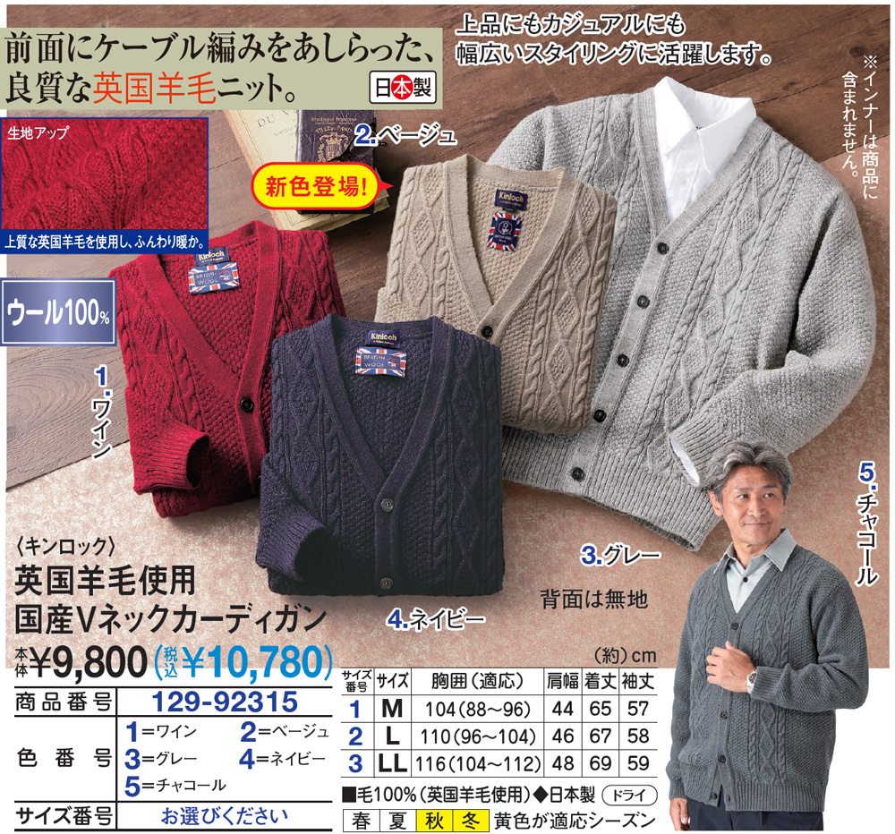 キンロック 英国羊毛使用国産Vネックカーディガン
