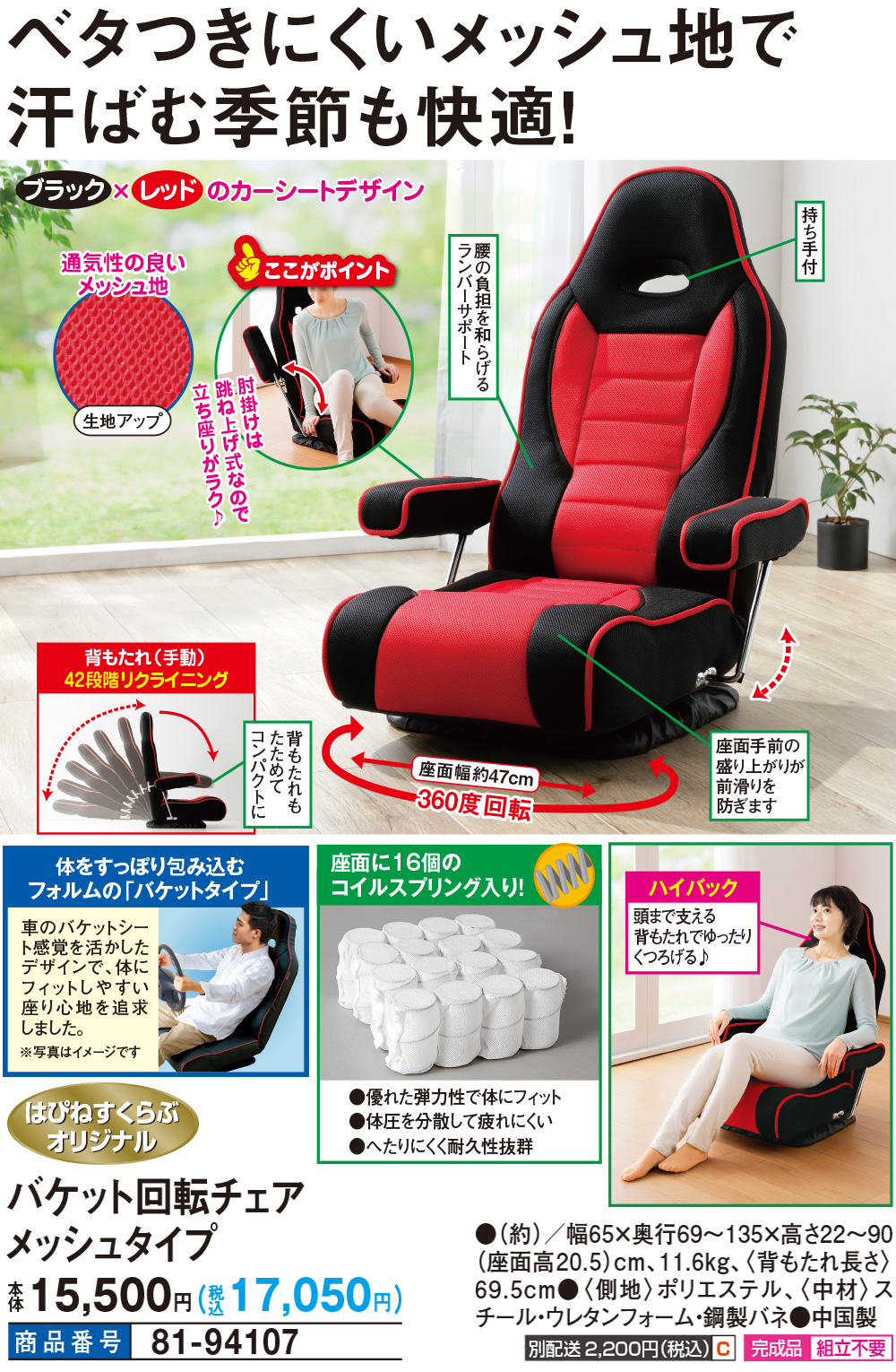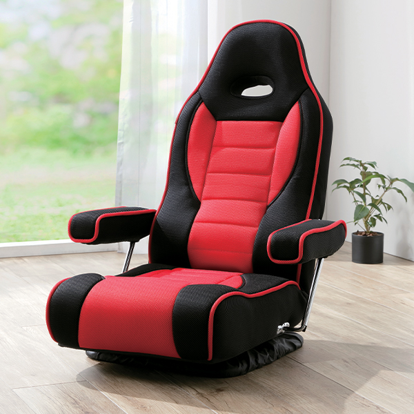 車のバケットシート感覚を活かしたデザインで、体にフィットしやすい座り心地を追求しました。