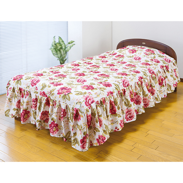 ベッドに掛けるだけ。フリルとバラ柄でドレスアップ! エレガントな寝室に早変わり ●簡単着脱