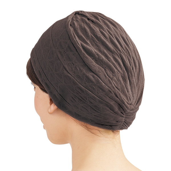 ムレにくい、ふんわり軽やかシルク帽子! 気になる薄毛、白髪、寝ぐせなどをお洒落に隠せます。 凹凸感のある編み柄が上品。 【こんなときにも便利】 ●急な来客時に ●入院時に ●薄毛や白髪隠しに ●髪の乱れが気になる