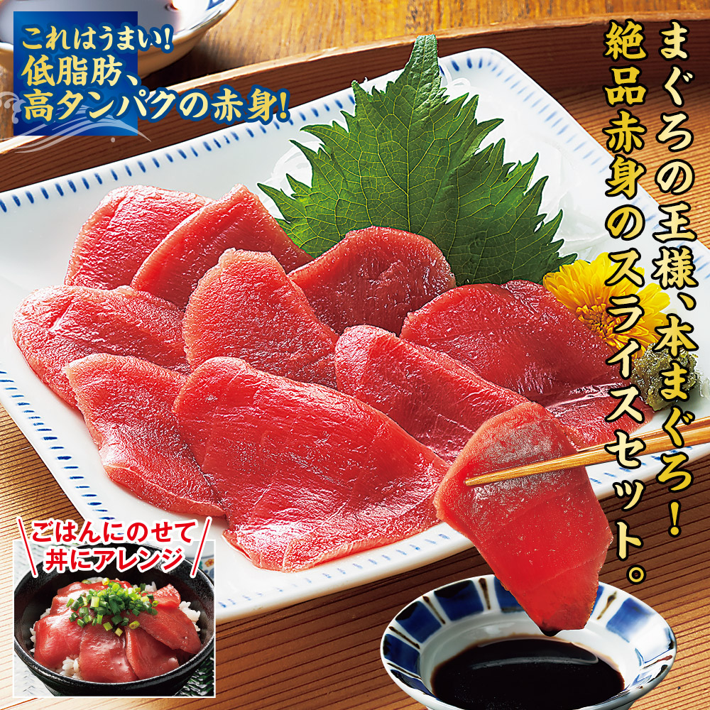 これはうまい!低脂肪、高タンパクの赤身! 本まぐろの美味しさが一番よくわかる赤身のセットです。 スライス済みで解凍後すぐ食べられます。