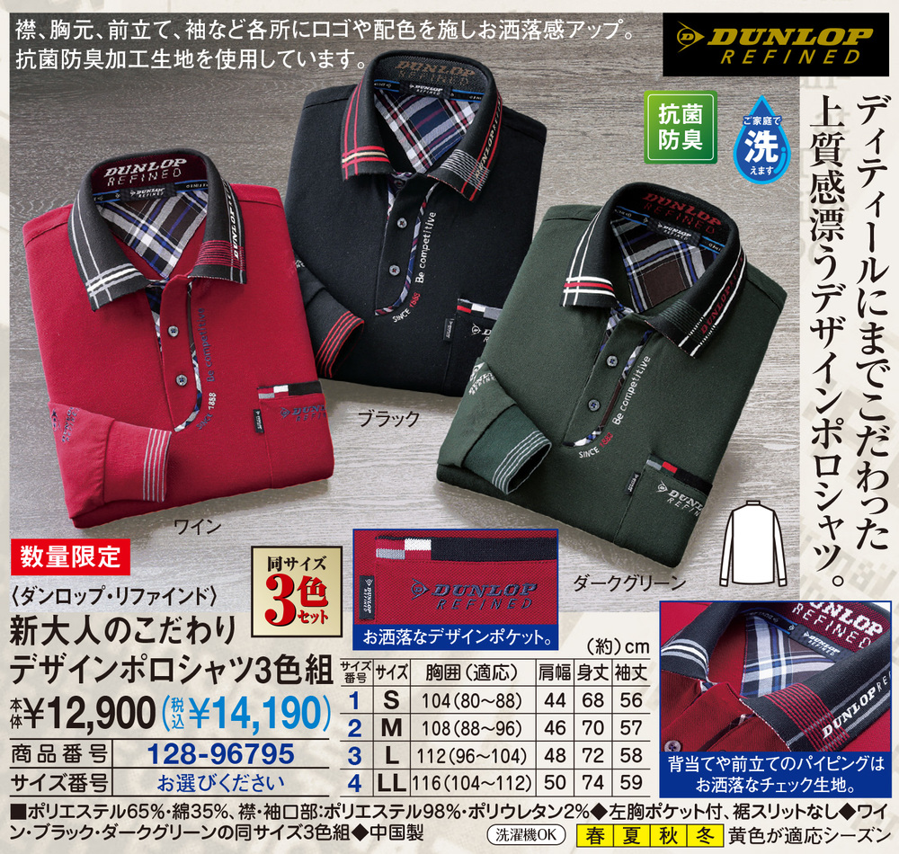 ダンロップ・リファインド 新大人のこだわりデザインポロシャツ3色組
