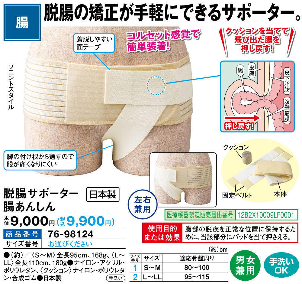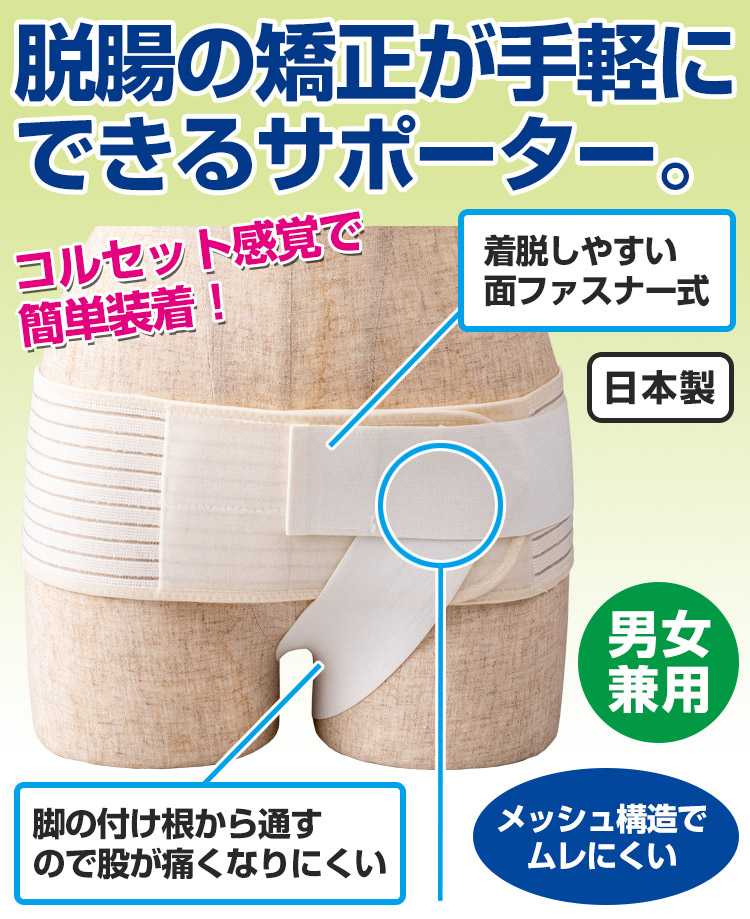 そこで脚の付け根からサッと通す、簡単装着を実現!サポート力を自由に調整でき、トイレでラクラク脱着できる気軽さで、腸を正しい位置へと癖づけしましょう。