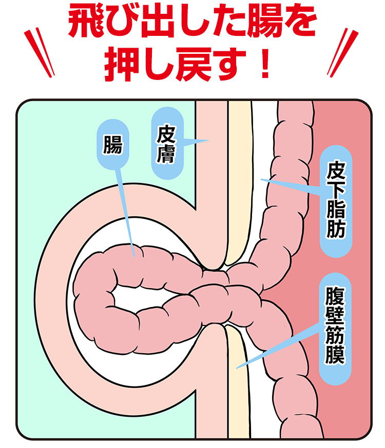 放置をしても治らないばかりか、腸閉塞や腹膜炎に至りかねない脱腸。