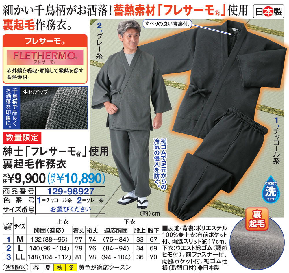 細かい千鳥柄がお洒落!蓄熱素材「フレサーモ(R)」使用裏起毛作務衣!