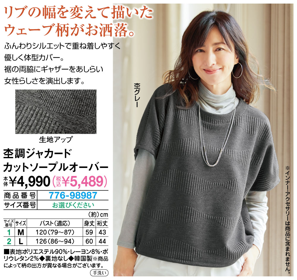 リブの幅を変えて描いたウェーブ柄がお洒落! ふんわりシルエットで重ね着しやすく優しく体型カバー。 裾の両脇にギャザーをあしらい女性らしさを演出します。